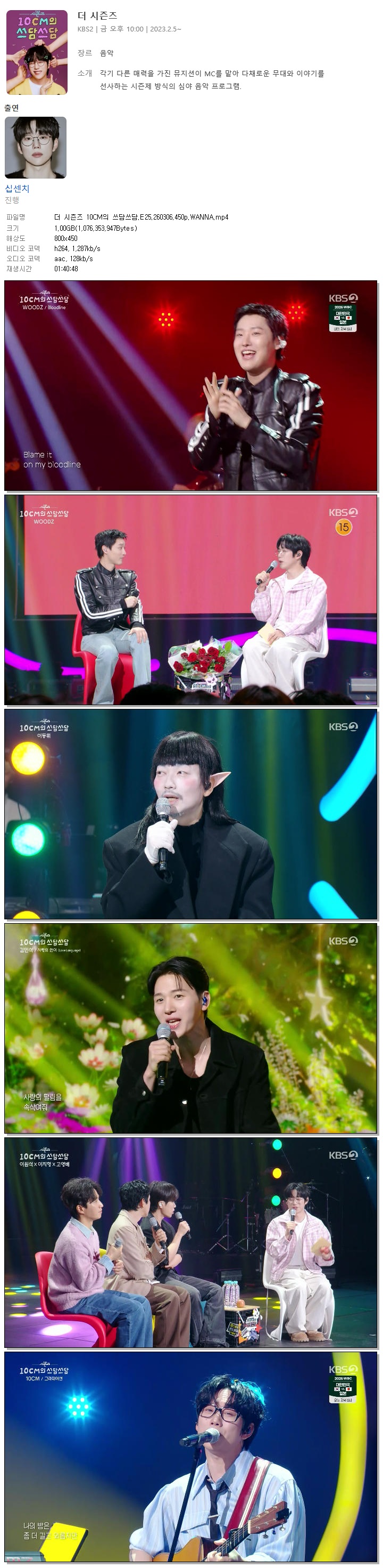 | [KBS2] 더 시즌즈 10CM의 쓰담쓰담.E25.260306.450p.WANNA[WOODZ, 이동휘].mp4 | 1 G | 01:40:48 | 800x450 |