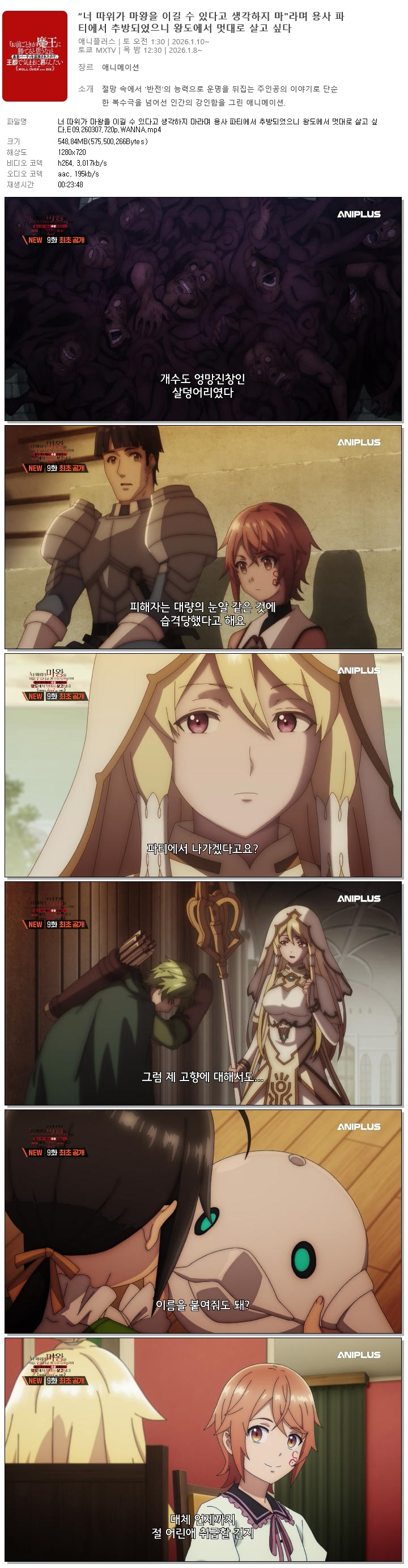 너 따위가 마왕을 이길 수 있다고 생각하지 마라며 용사 파티에서 추방되었으니 왕도에서 멋대로 살고 싶다.E09.260307.720p.WANNA.mp4 548.8 M 00:23:48 1280x720
