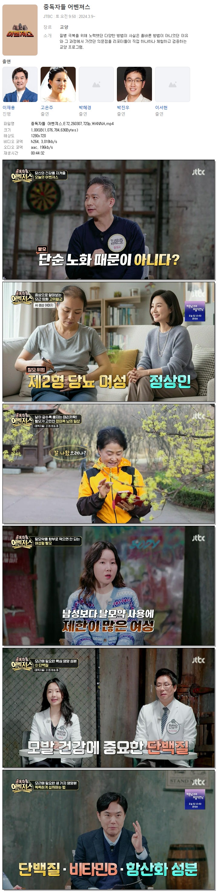| [JTBC] 중독자들 어벤져스.E72.260307.720p.WANNA[이재용, 고은주].mp4 | 1 G | 00:44:32 | 1280x720 |