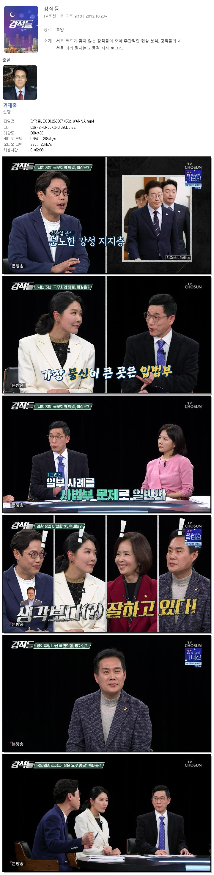 [TV조선] 강적들.E630.260307.450p.WANNA[권재홍].mp4 636.4 M 01:02:33 800x450