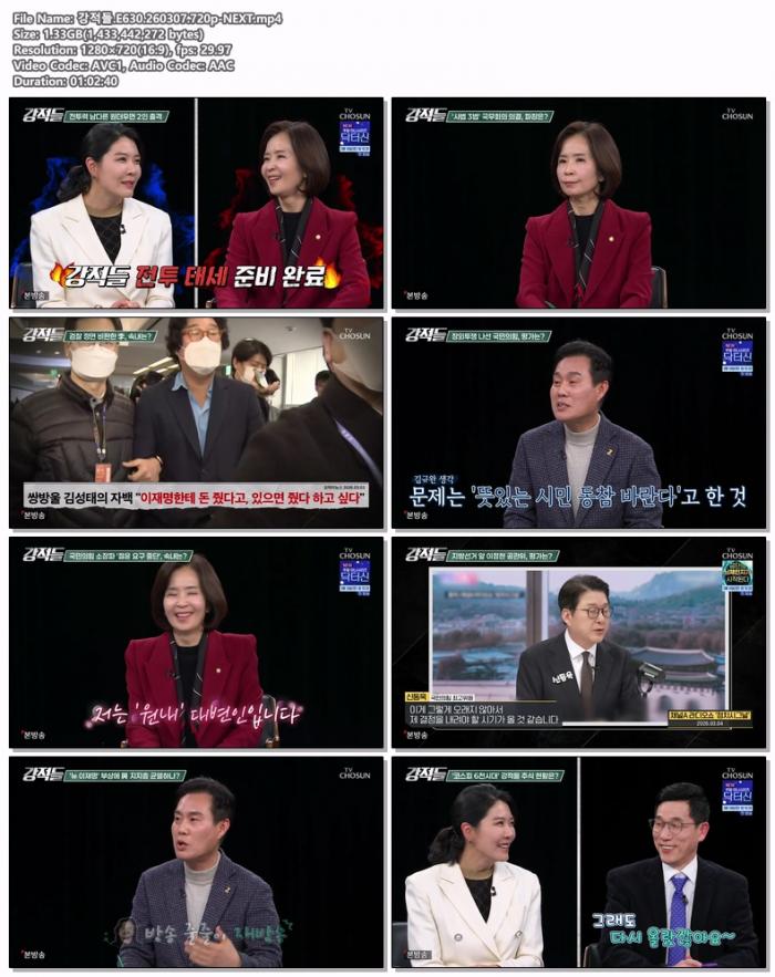 | 강적들.E630.260307.720p-NEXT.mp4 | 1.3 G | 01:02:00 | 1280x720 |