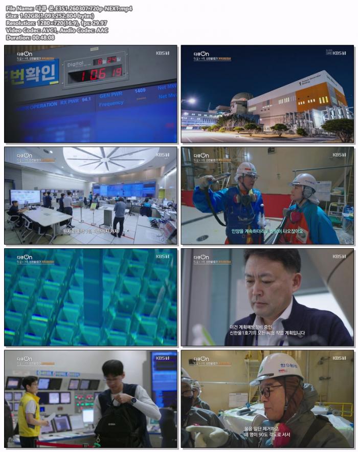 다큐 온.E351.260307.720p-NEXT.mp4 1 G 00:48:08 1280x720