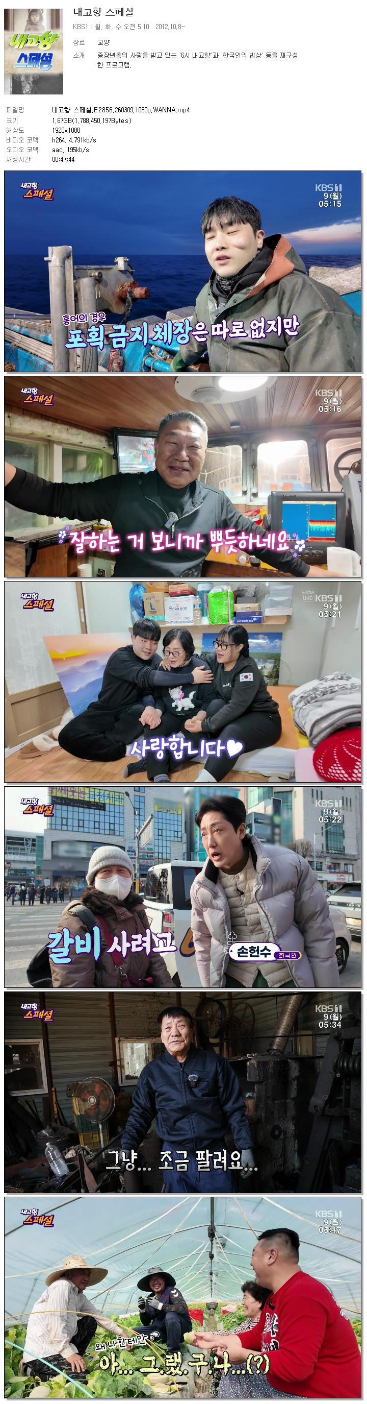 | [KBS1] 내고향 스페셜.E2856.260309.1080p.WANNA.mp4 | 1.7 G | 00:47:44 | 1920x1080 |