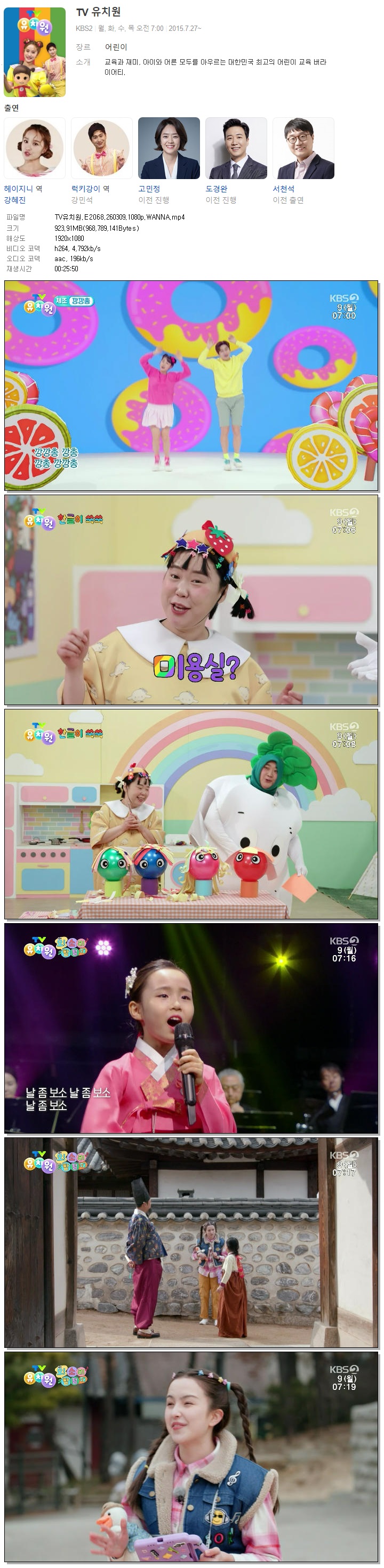 | [KBS2] TV유치원.E2068.260309.1080p.WANNA.mp4 | 923.9 M | 00:25:50 | 1920x1080 |