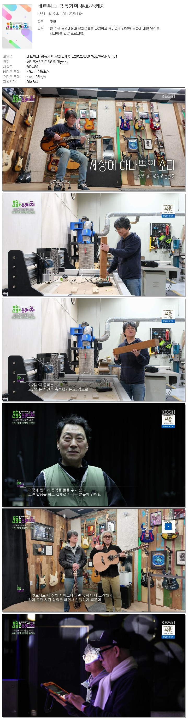 | [KBS1] 네트워크 공동기획 문화스케치.E294.260309.450p.WANNA.mp4 | 493.7 M | 00:48:44 | 800x450 |