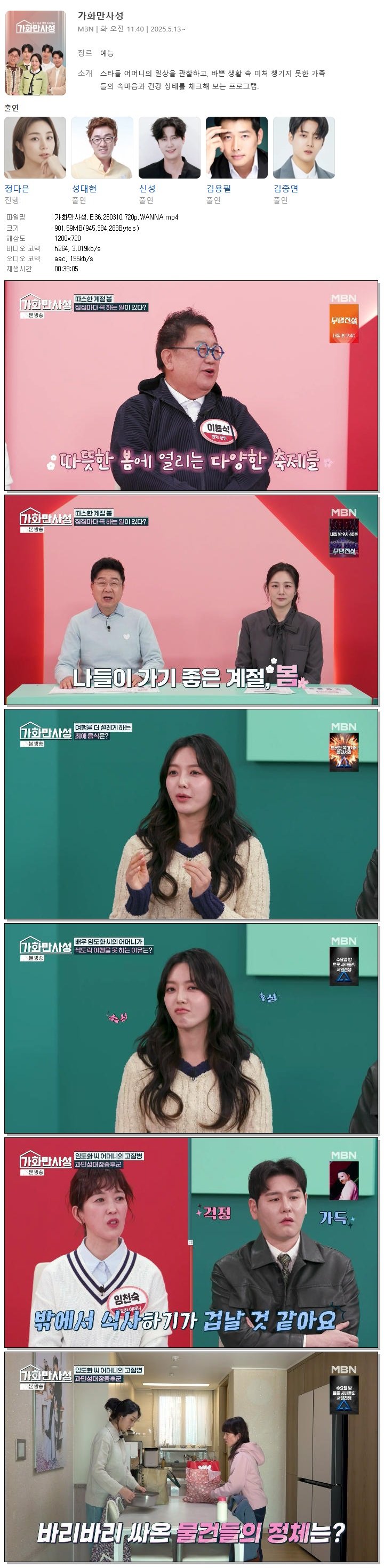[MBN] 가화만사성.E36.260310.720p.WANNA[정다은, 성대현].mp4 901.6 M 00:39:05 1280x720