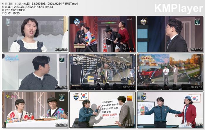 | 개그콘서트.E1163.260308.1080p.H264-F1RST.mp4 | 2.2 G | 01:16:00 | 1920x1080 |
