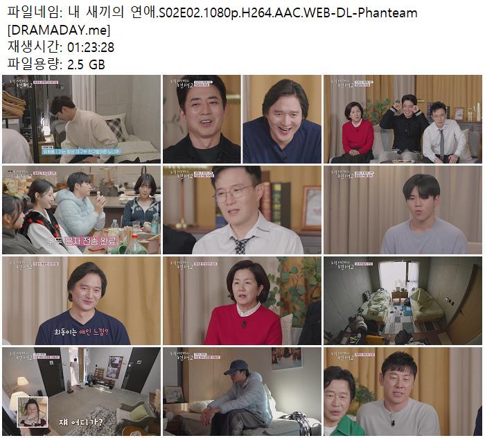 | 내 새끼의 연애.S02E02.1080p.H264.AAC.WEB-DL-Phanteam [DRAMADAY.me].mkv | 2.5 G | 01:23:00 | 1920x1080 |