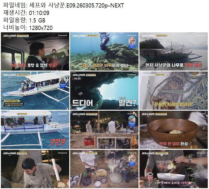 셰프와 사냥꾼.E09.260305.720p-NEXT.mp4 1.5 G 01:10:00 1280x720