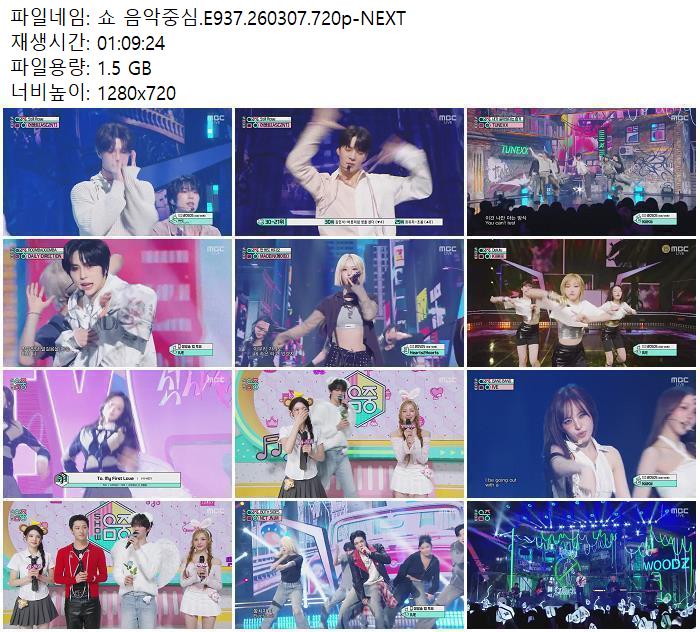 | 쇼 음악중심.E937.260307.720p-NEXT.mp4 | 1.5 G | 01:09:00 | 1280x720 |