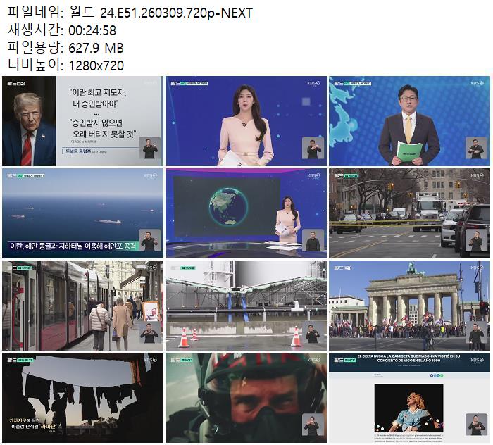 | 월드 24.E51.260309.720p-NEXT.mp4 | 627.9 M | 00:24:58 | 1280x720 |