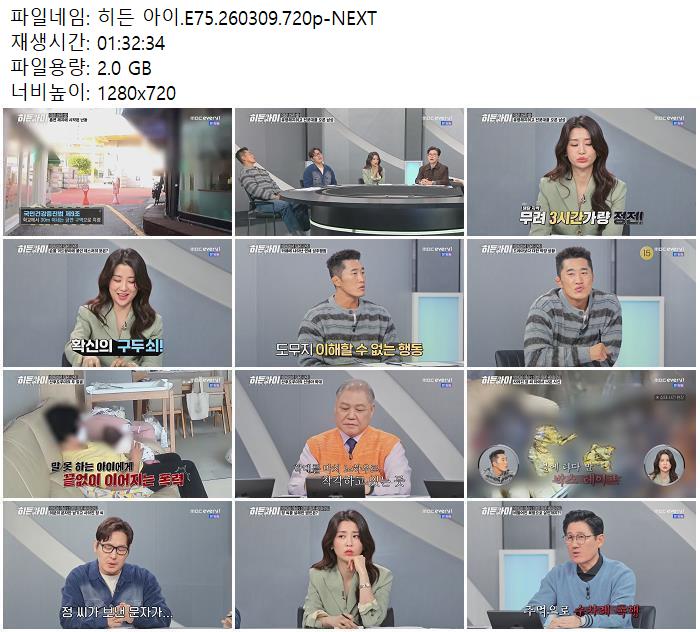 | 히든 아이.E75.260309.720p-NEXT.mp4 | 2 G | 01:32:00 | 1280x720 |