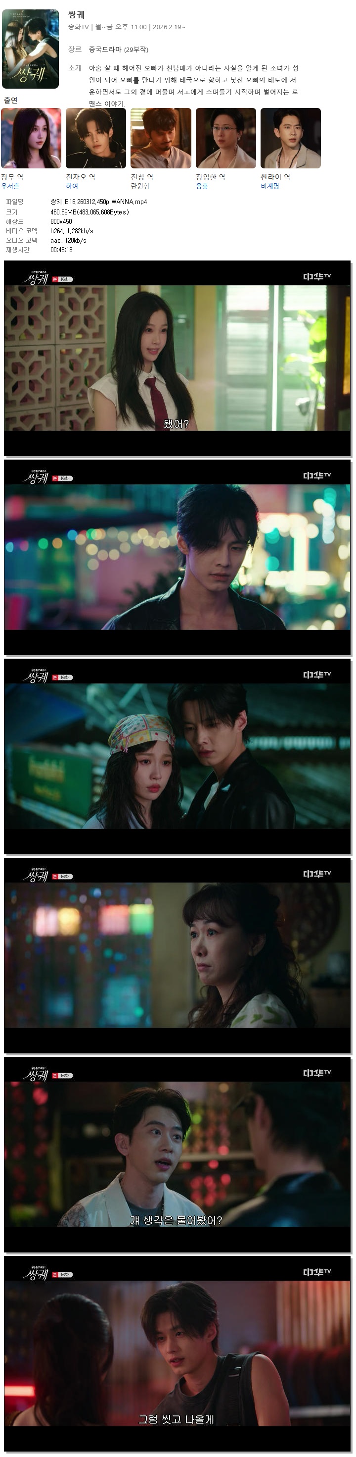 | [중화TV] 쌍궤.E16.260312.450p.WANNA[우서흔, 하여].mp4 | 460.7 M | 00:45:18 | 800x450 |