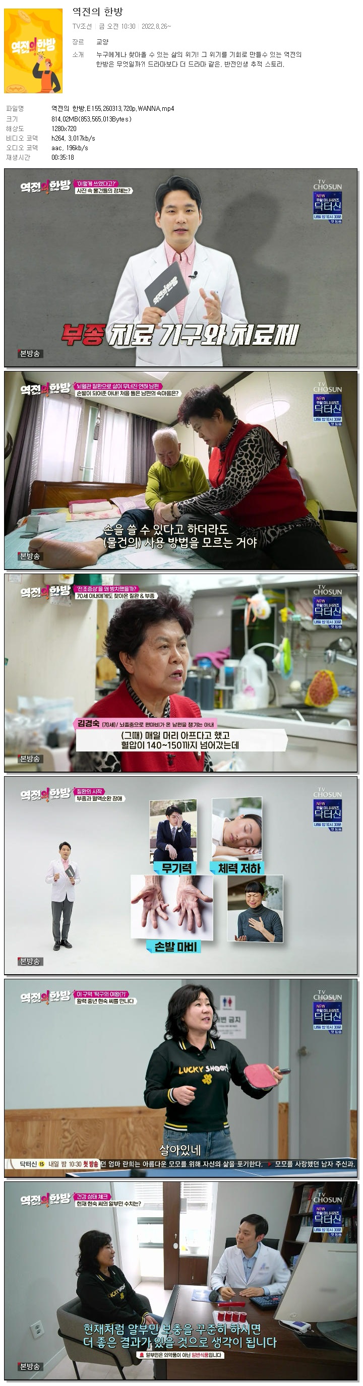 | [TV조선] 역전의 한방.E155.260313.720p.WANNA.mp4 | 814 M | 00:35:18 | 1280x720 |