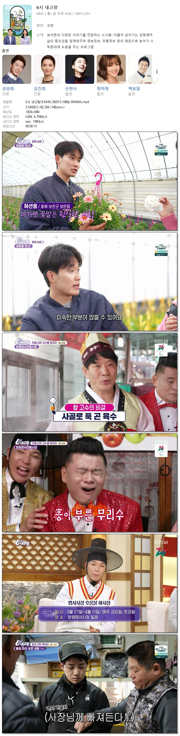 [KBS1] 6시 내고향.E8496.260313.1080p.WANNA[강승화, 김진희].mp4 2 G 00:58:13 1920x1080