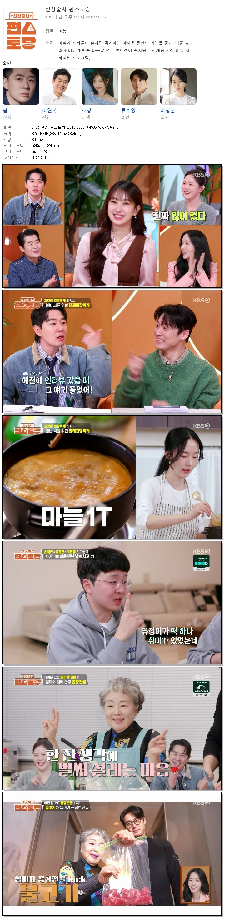 | [KBS2] 신상 출시 편스토랑.E313.260313.450p.WANNA[오상진, 이정현].mp4 | 824.9 M | 01:21:13 | 800x450 |
