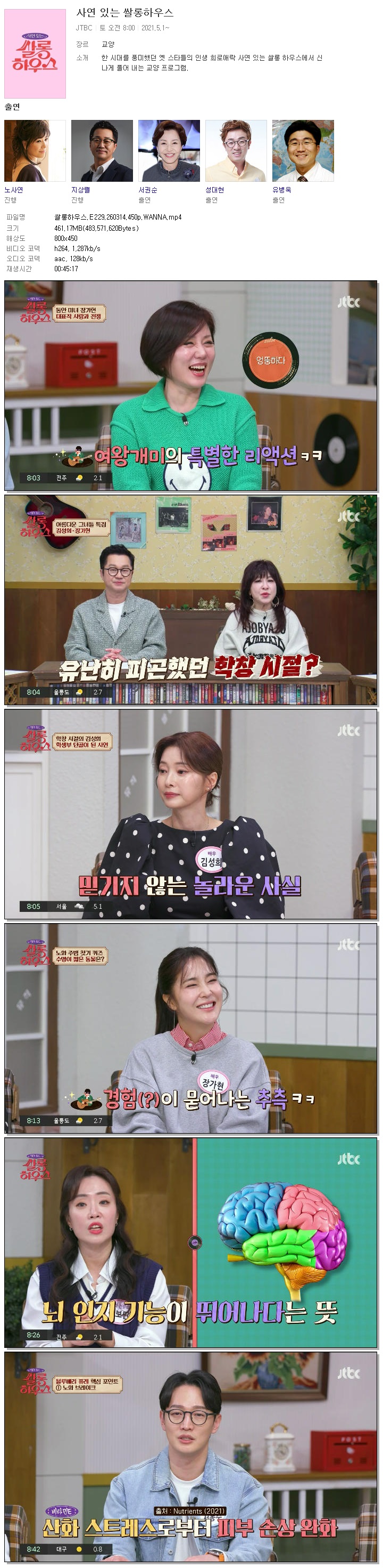 | [JTBC] 쌀롱하우스.E229.260314.450p.WANNA[노사연, 지상렬].mp4 | 461.2 M | 00:45:17 | 800x450 |