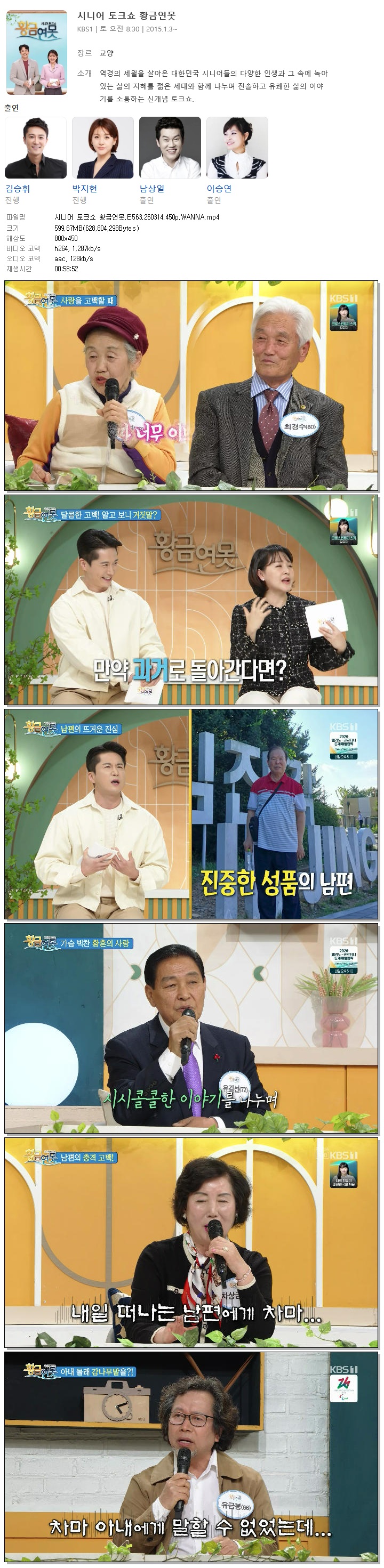 | [KBS1] 시니어 토크쇼 황금연못.E563.260314.450p.WANNA[김승휘, 박지현].mp4 | 599.7 M | 00:58:52 | 800x450 |