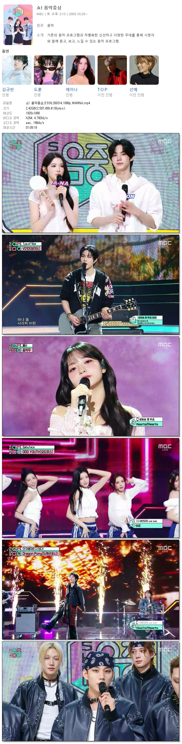 | [MBC] 쇼! 음악중심.E938.260314.1080p.WANNA[온유, 드래곤포니].mp4 | 2.4 G | 01:09:18 | 1920x1080 |