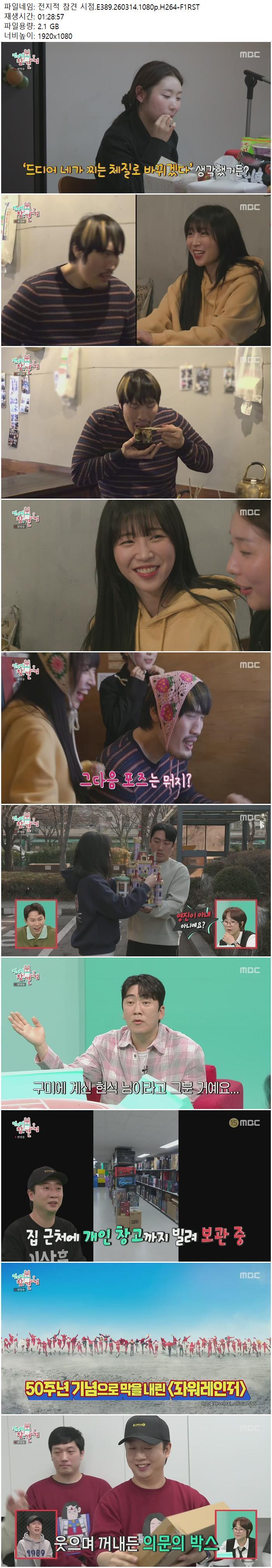 | 전지적 참견 시점.E389.260314.1080p.H264-F1RST.mp4 | 2.1 G | 01:28:57 | 1920x1080 |