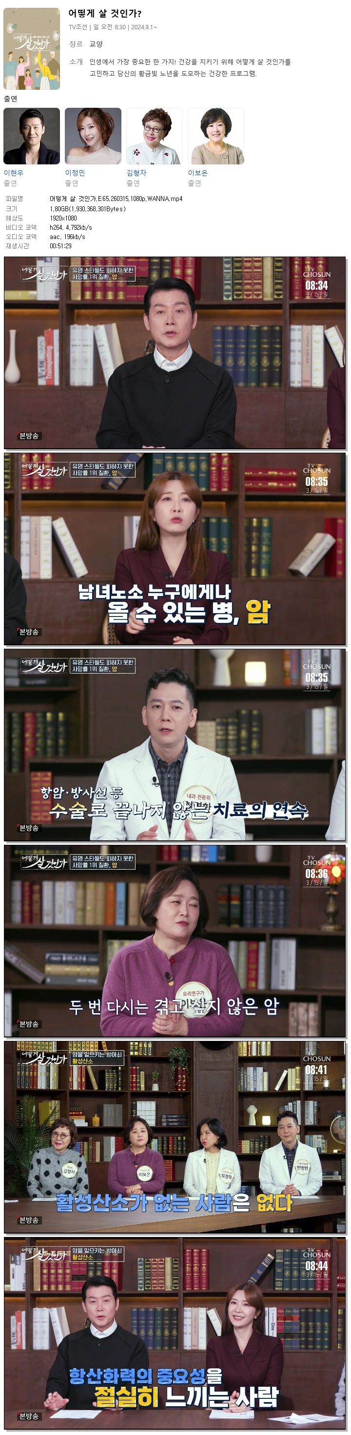 | [TV조선] 어떻게 살 것인가.E65.260315.1080p.WANNA[이현우, 이정민].mp4 | 1.8 G | 00:51:29 | 1920x1080 |