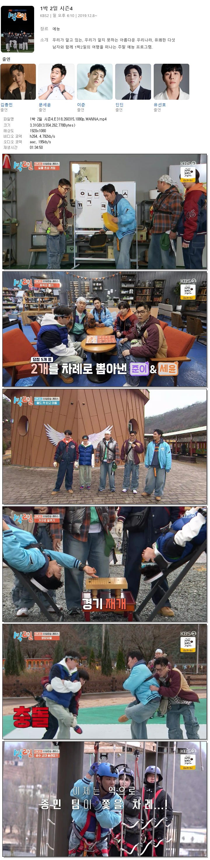 | [KBS2] 1박 2일 시즌4.E318.260315.1080p.WANNA[이준, 문세윤].mp4 | 3.3 G | 01:34:50 | 1920x1080 |