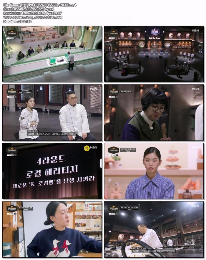 | 천하제빵.E07.260315.720p-NEXT.mp4 | 2.1 G | 01:37:00 | 1280x720 |