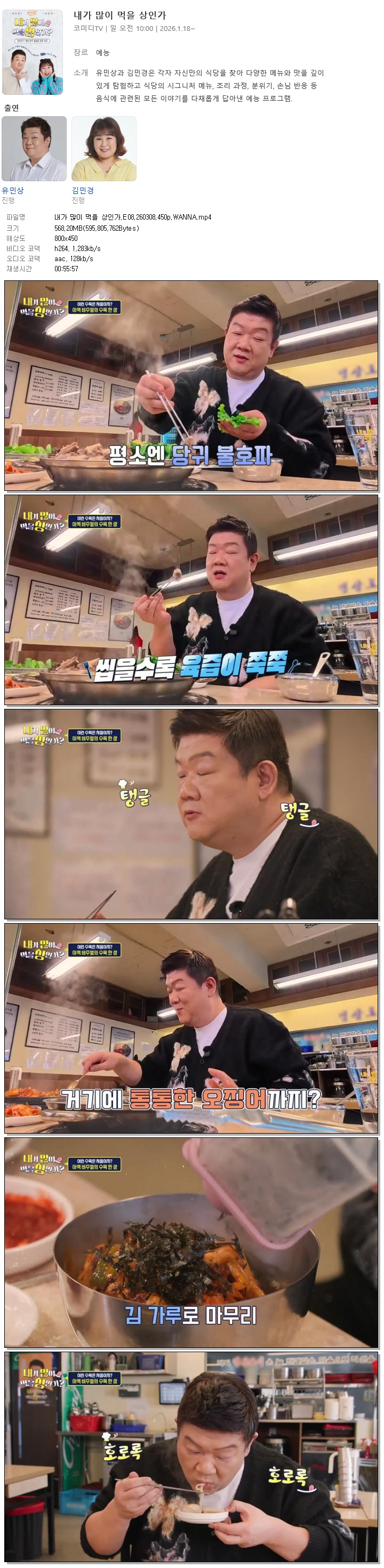 | [코미디TV] 내가 많이 먹을 상인가.E08.260308.450p.WANNA[유민상, 김민경].mp4 | 568.2 M | 00:55:57 | 800x450 |