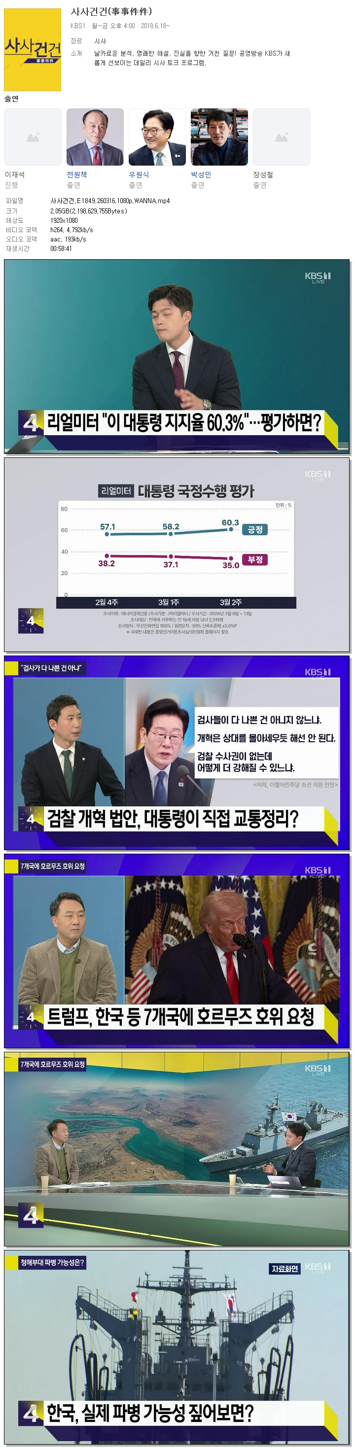 | [KBS1] 사사건건.E1849.260316.1080p.WANNA.mp4 | 2 G | 00:58:41 | 1920x1080 |