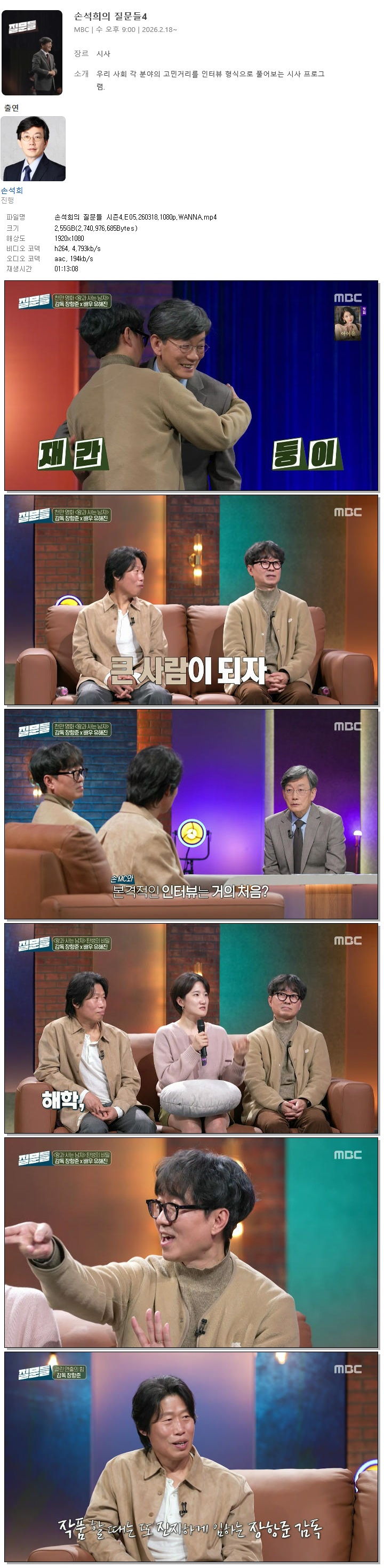 | [MBC] 손석희의 질문들 시즌4.E05.260318.1080p.WANNA[유해진, 장항준].mp4 | 2.6 G | 01:13:08 | 1920x1080 |