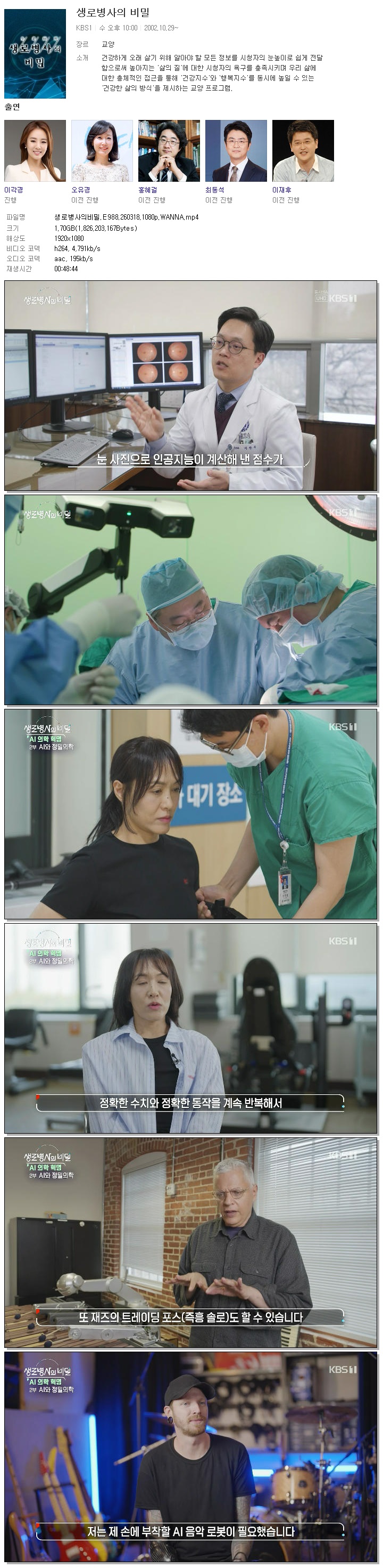 | [KBS1] 생로병사의비밀.E988.260318.1080p.WANNA.mp4 | 1.7 G | 00:48:44 | 1920x1080 |