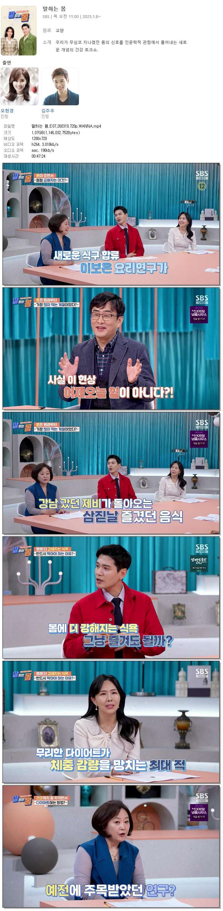 | [SBS] 말하는 몸.E07.260319.720p.WANNA[오현경, 김주우].mp4 | 1.1 G | 00:47:24 | 1280x720 |
