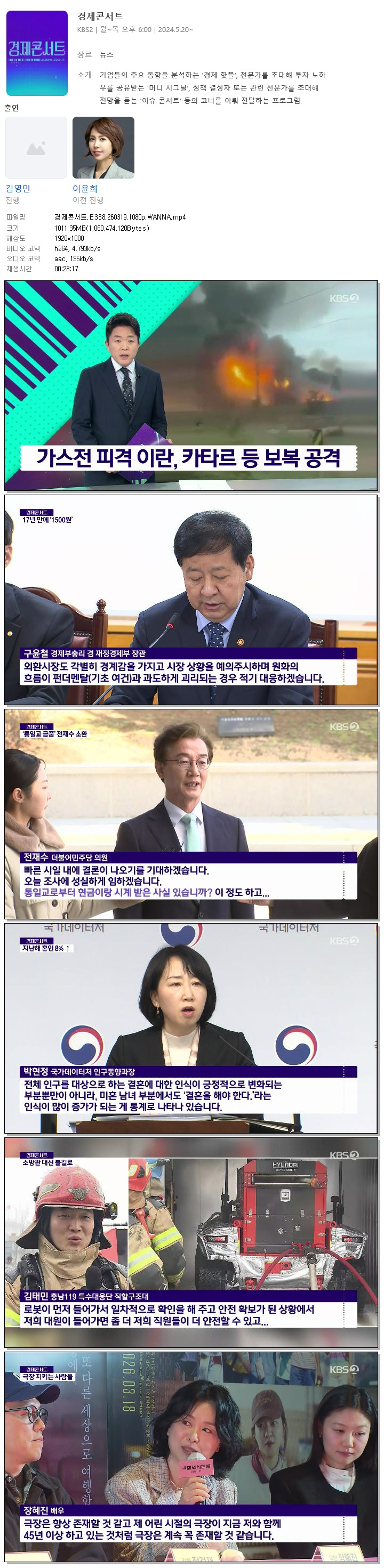 | [KBS2] 경제콘서트.E338.260319.1080p.WANNA[김영민].mp4 | 1011.3 M | 00:28:17 | 1920x1080 |