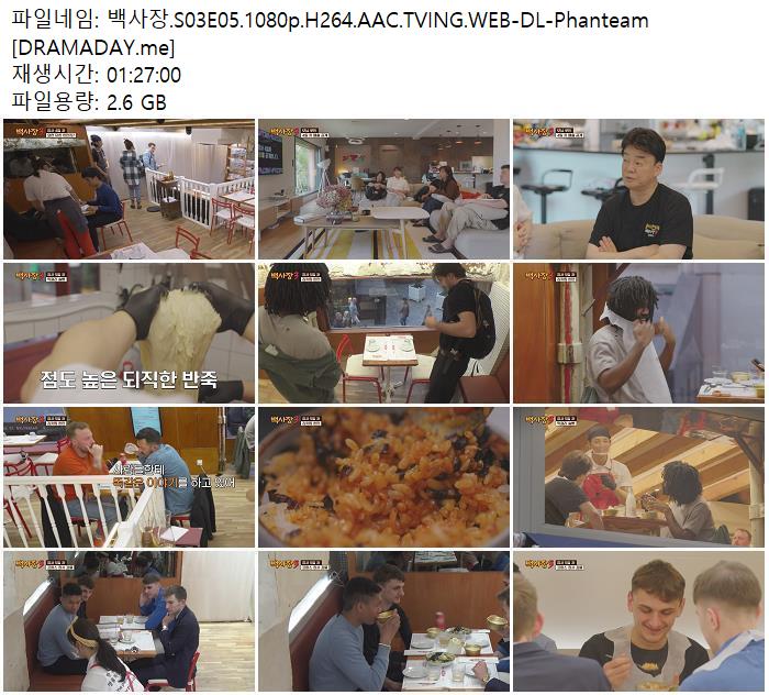 | 백사장.S03E05.1080p.H264.AAC.TVING.WEB-DL-Phanteam [DRAMADAY.me].mkv | 2.6 G | 01:27:00 | 1920x1080 |