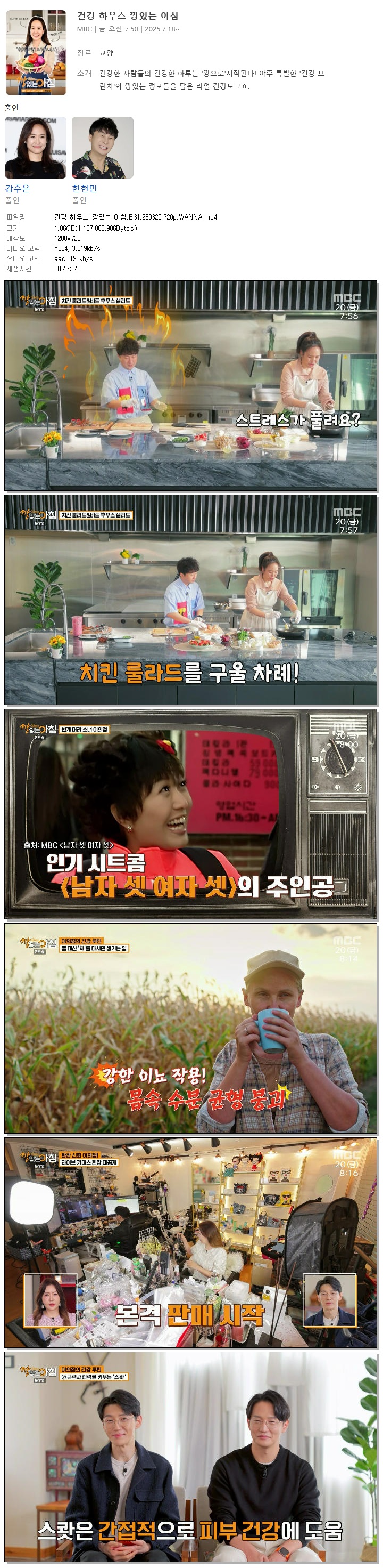 | [MBC] 건강 하우스 깡있는 아침.E31.260320.720p.WANNA[강주은, 한현민].mp4 | 1.1 G | 00:47:04 | 1280x720 |