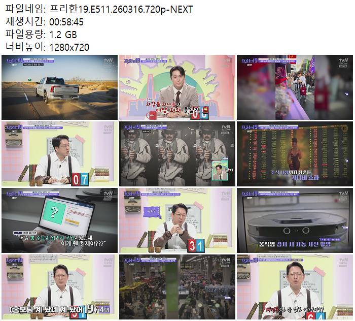 | 프리한19.E511.260316.720p-NEXT.mp4 | 1.2 G | 00:58:45 | 1280x720 |