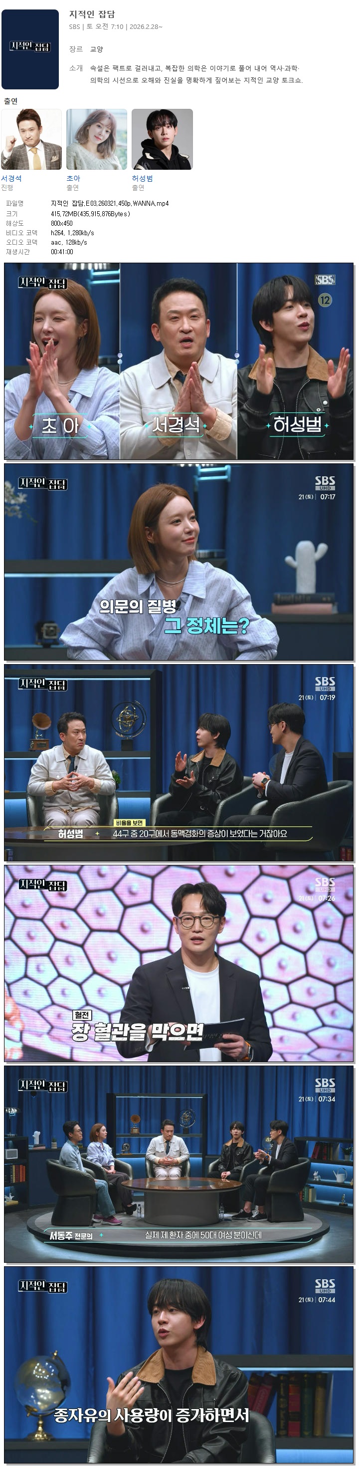 [SBS] 지적인 잡담.E03.260321.450p.WANNA[서경석, 초아].mp4 415.7 M 00:41:00 800x450