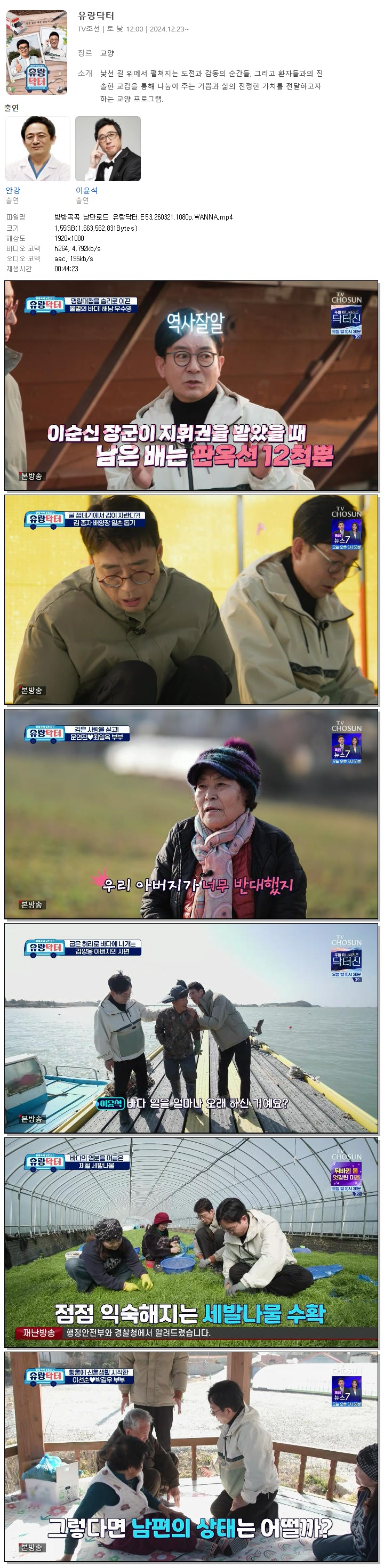 | [TV조선] 방방곡곡 낭만로드 유랑닥터.E53.260321.1080p.WANNA[안강, 이윤석].mp4 | 1.5 G | 00:44:23 | 1920x1080 |