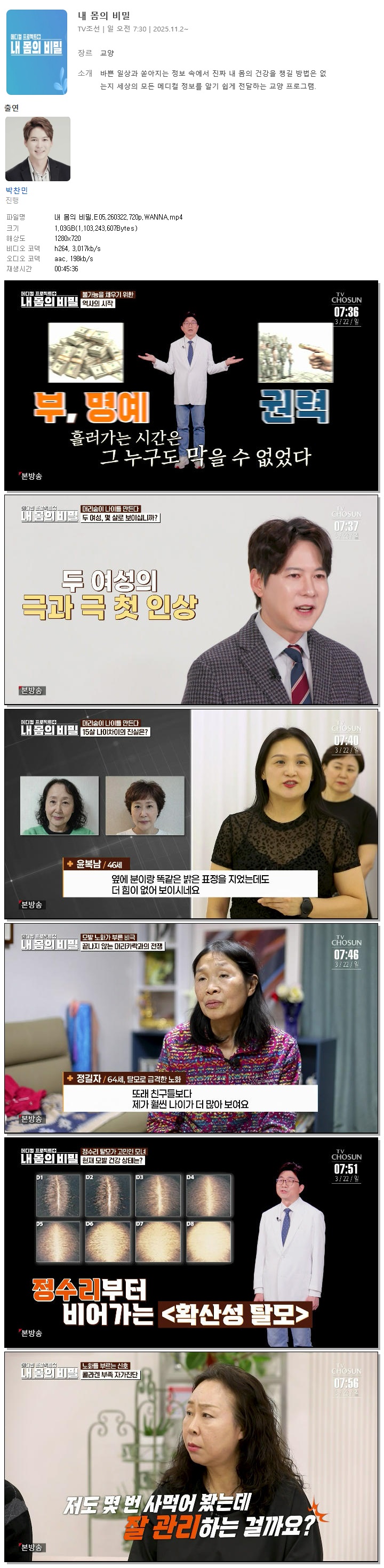 | [TV조선] 내 몸의 비밀.E05.260322.720p.WANNA[박찬민].mp4 | 1 G | 00:45:36 | 1280x720 |