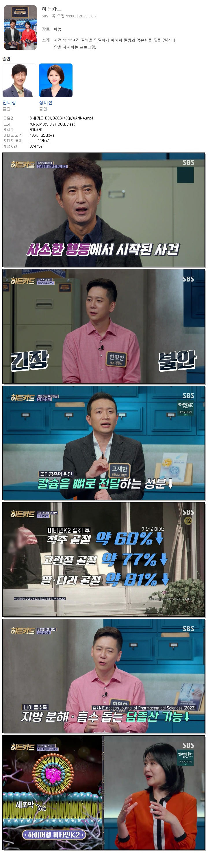 | [SBS] 히든카드.E34.260324.450p.WANNA[안내상, 정미선].mp4 | 486.6 M | 00:47:57 | 800x450 |