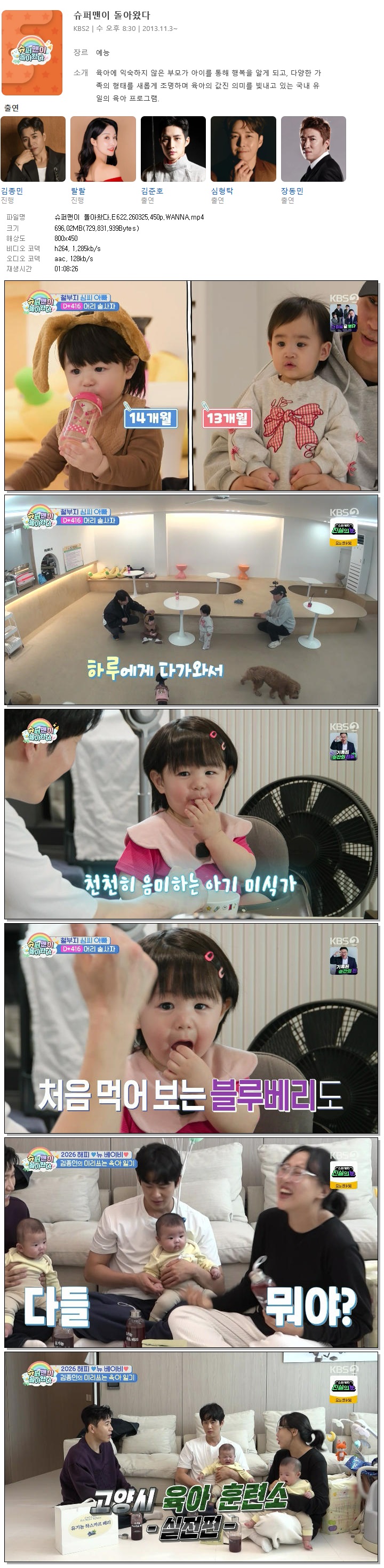 | [KBS2] 슈퍼맨이 돌아왔다.E622.260325.450p.WANNA[김종민, 랄랄].mp4 | 696 M | 01:08:26 | 800x450 |