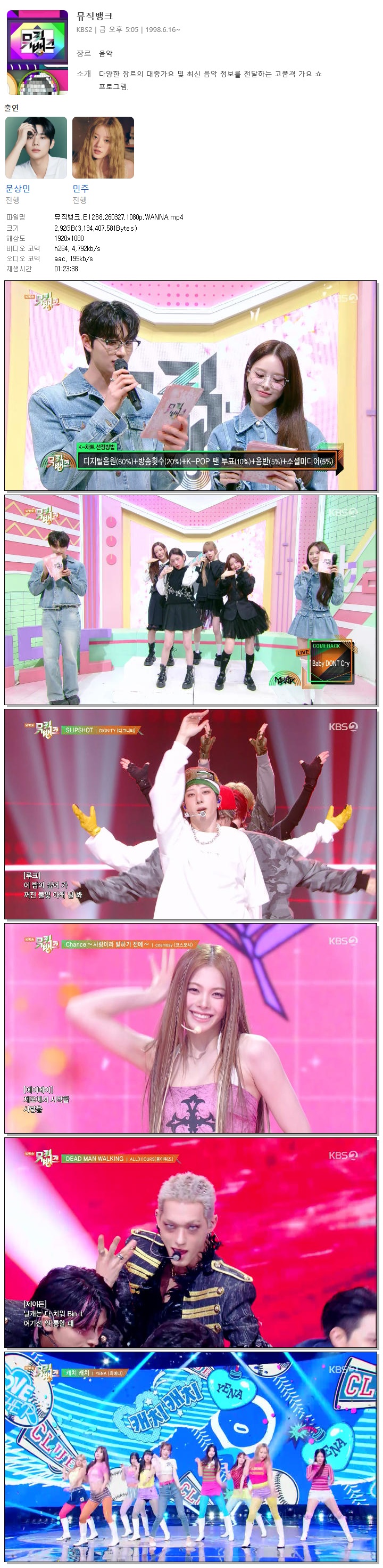 | [KBS2] 뮤직뱅크.E1288.260327.1080p.WANNA[강민, 유나].mp4 | 2.9 G | 01:23:38 | 1920x1080 |