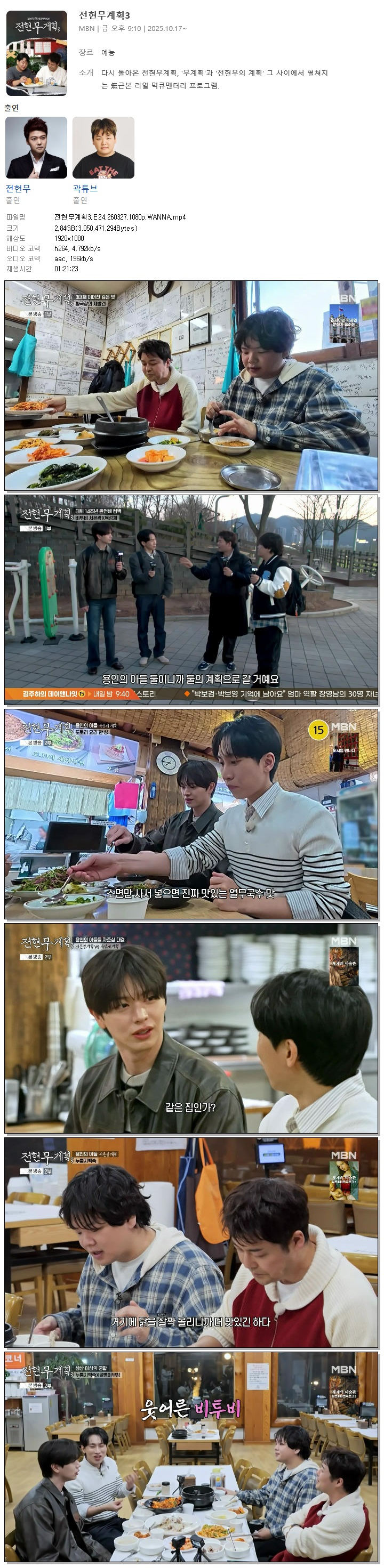 | [MBN] 전현무계획3.E24.260327.1080p.WANNA[육성재, 서은광].mp4 | 2.8 G | 01:21:23 | 1920x1080 |