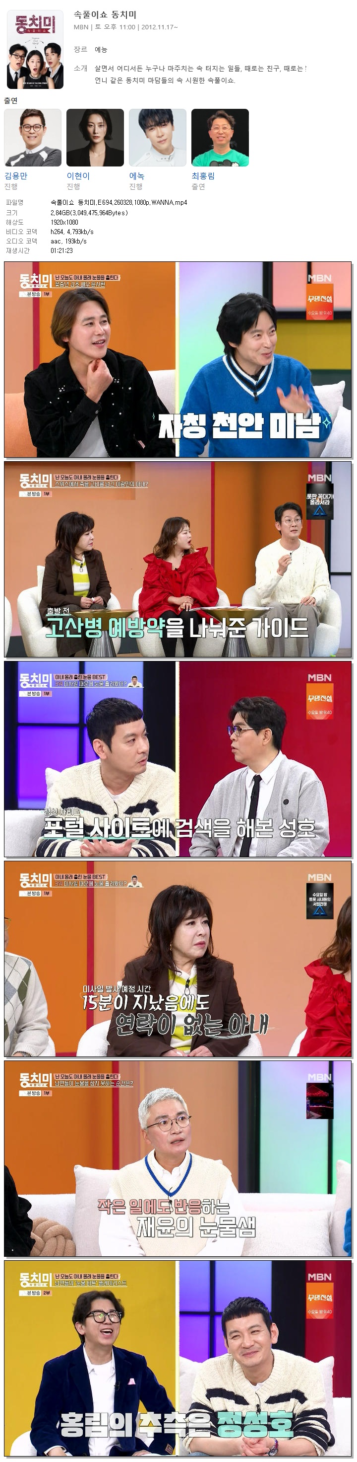 | [MBN] 속풀이쇼 동치미.E694.260328.1080p.WANNA[심진화, 정성호].mp4 | 2.8 G | 01:21:23 | 1920x1080 |