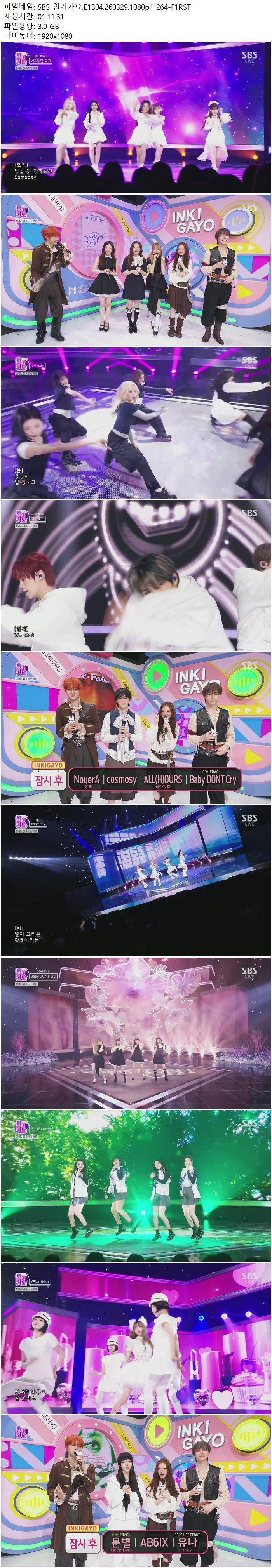 | SBS 인기가요.E1304.260329.1080p.H264-F1RST.mp4 | 3 G | 01:11:31 | 1920x1080 |