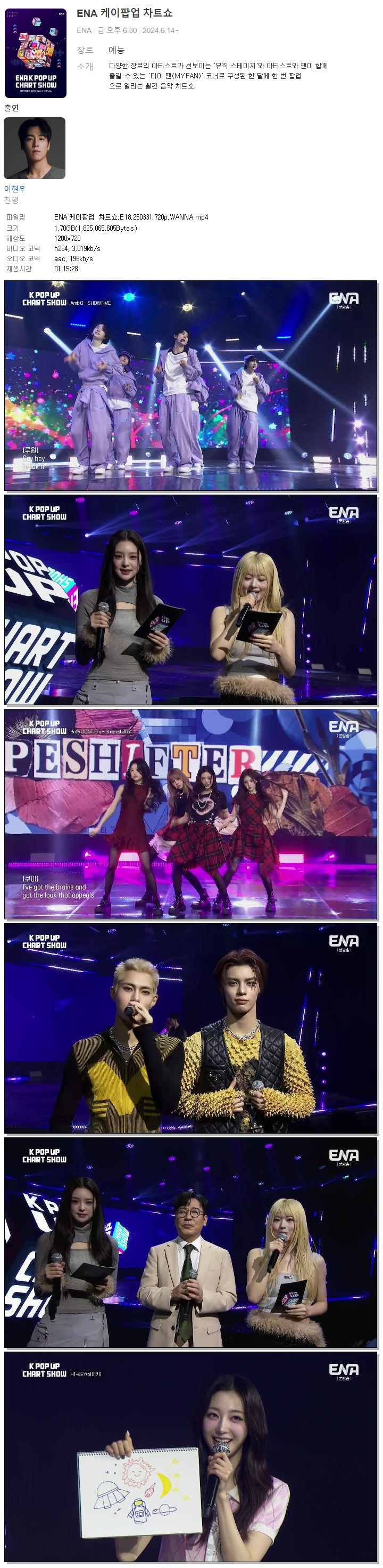 | [ENA] ENA 케이팝업 차트쇼.E18.260331.720p.WANNA[H1KEY, 누에라].mp4 | 1.7 G | 01:15:28 | 1280x720 |