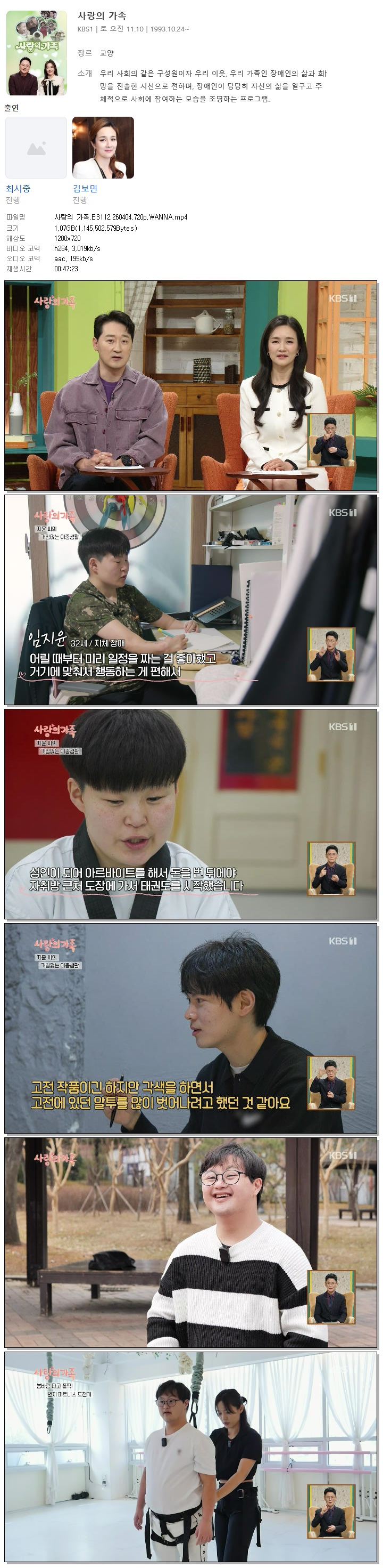 | [KBS1] 사랑의 가족.E3112.260404.720p.WANNA[최시중, 김보민].mp4 | 1.1 G | 00:47:23 | 1280x720 |