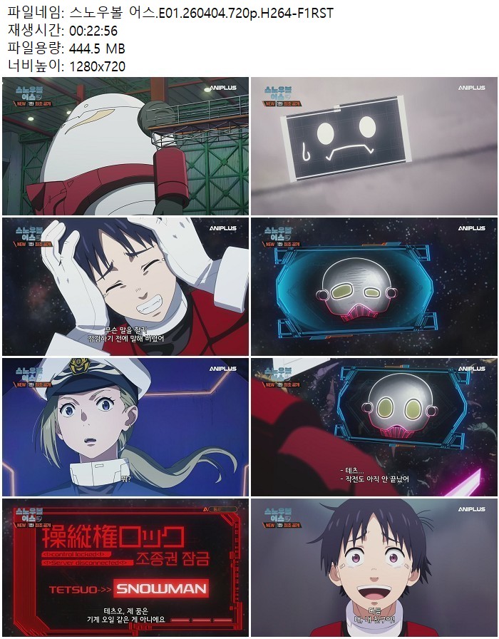 | 스노우볼 어스.E01.260404.720p.H264-F1RST.mp4 | 444.5 M | 00:22:56 | 1280x720 |