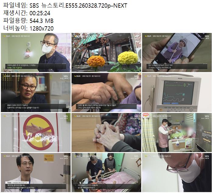 | SBS 뉴스토리.E555.260328.720p-NEXT.mp4 | 544.3 M | 00:25:24 | 1280x720 |
