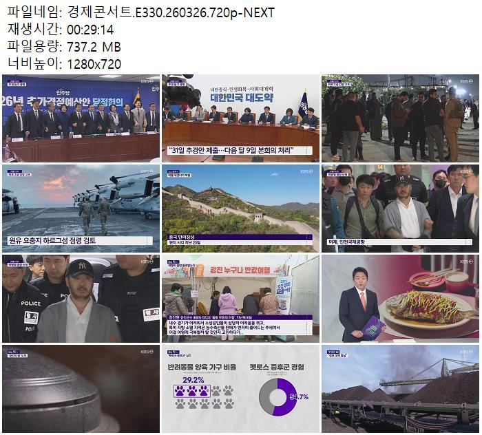 | 경제콘서트.E330.260326.720p-NEXT.mp4 | 737.2 M | 00:29:14 | 1280x720 |